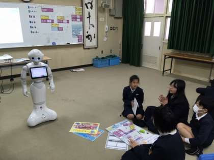今日は5年2組がペッパー君を使った「プログラミング学習」を行いました。
