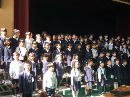 卒業式の合間をぬって、1年生も入学式の練習をすすめています。