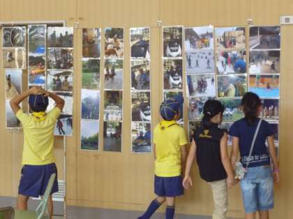 また、体育館には、ボーイスカウトの活動紹介や震災をはじめとするたくさんの掲示物が展示されていました。