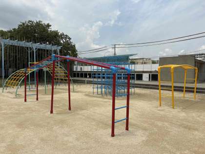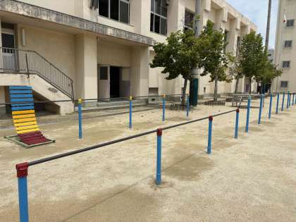 暑い中、管理作業員さんが鉄棒や遊具をペンキできれいに塗り替えてくれました。