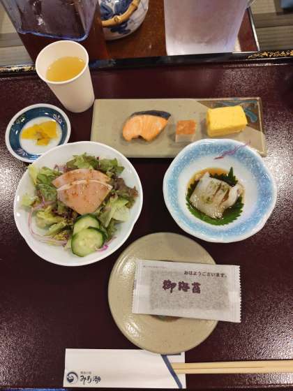 朝食です。 いただきます。もりもり食べてます。