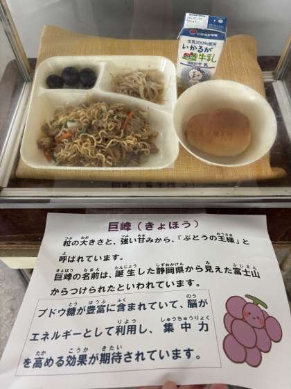 とても甘い巨峰で大人気でした。オイスターソース焼きそばは、テンメンジャン、オイスターソース味で大好評でした。