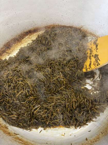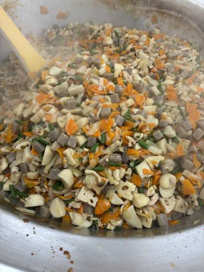 茎わかめは、わかめの葉の真ん中の部分で、歯ごたえのあるコリコリとした食感が特徴です。骨や歯を強くするカルシウムや、おなかの調子を整える食物せんいを多く含んでいます。けずりぶしでだしをとり、茎わかめを加えて煮る。煮あがれば、砂糖、みりん、こいくちしょうゆで味付けし、十分煮つめて作ります。1年生の子ども達も最初は、「なに?」って言ってましたが食べてみると「おいしい」とおかわりしていました。
