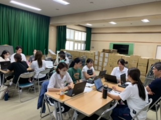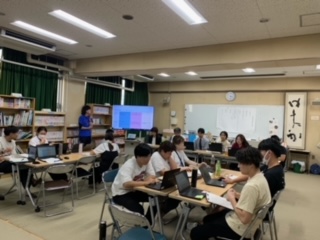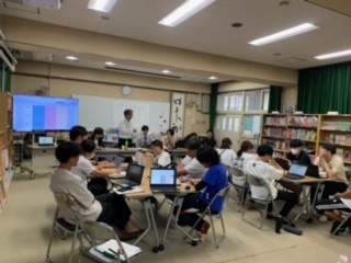 1年生の国語科の授業について、振り返ったり、意見の交流をしたりした後、大阪市総合教育センターのスクールアドバイザーの先生から指導助言をしていただきました。