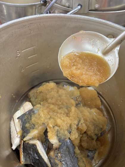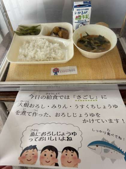 さごしにおろしじょうゆをかけて食べると「おいしい」と大好評でした。