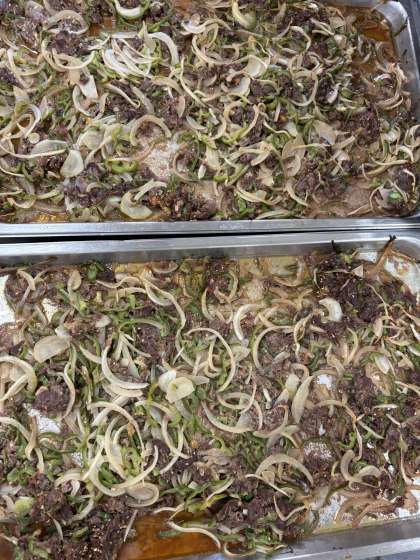プルコギの「プル」は、「火」、「コギ」は、「肉」という意味で、合わせて「火で焼いた肉」という意味になります。トックの「トッ」は、「もち」、「クッ」は、「汁」という意味です。韓国・朝鮮のもちと野菜を使ったスープです。今日もどのクラスも完食して大好評でした。