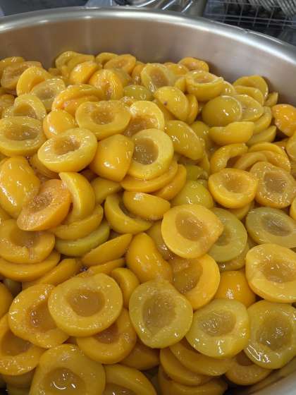 大阪市では、1981年に米飯給食が始まり、カレーライスも出るようになりました。今は、ポークカレーライスやチキンカレーライス、冬野菜のカレーライスなど、色々なカレーライスが給食に出ます。今日は、豚肉を使った「ポークカレーライス」でした。黄桃缶は、山形県産の桃を缶詰にしたもので甘くて大人気でした。