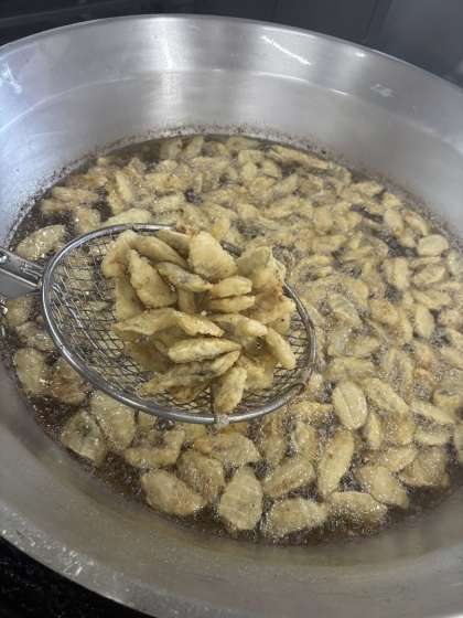 フリッターとは、小麦粉や泡立てた卵白などで作った衣をつけて油で揚げたものです。