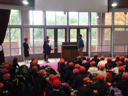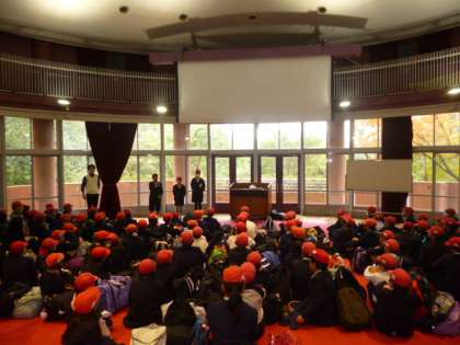 大阪府立少年自然の家に着いて開舎式をしている様子です。