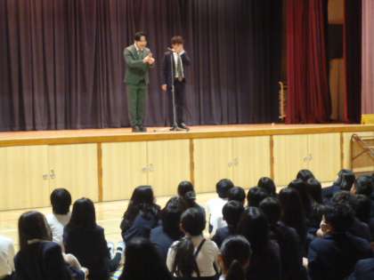 最後に、ウーロンパンダさん、満丸さんが漫才をしてくださりました。プロの漫才師の方の漫才に、みんな夢中になり、講堂全体がとても楽しい空間になりました。