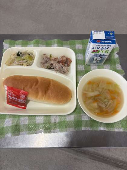 今日の給食も緑のグループの食べ物がたくさん入っていました。