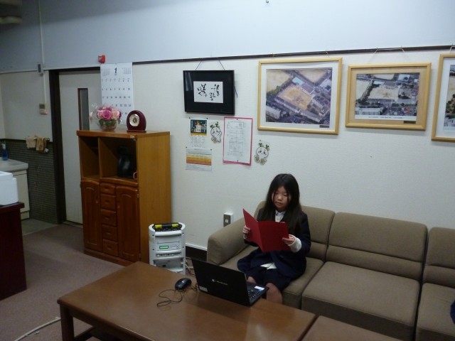 次にみんなで校歌を歌った後、4年生の代表の児童が3学期への決意を発表しました。