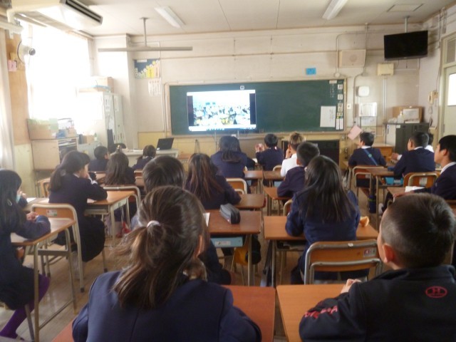 たてわり班で集まってから、給食を作っている調理員さんの様子やみんなから調理員さんへの質問をして答えてくださっている様子の動画を見ました。その後、「給食すごろく」をして給食の歴史を楽しく知りました。