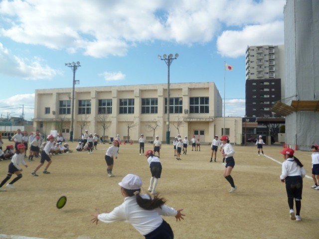 3年生も4年生も、楽しくドッジビーをして異学年交流をすることができました。