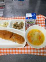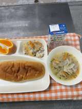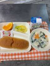 ★ほうれん草のクリームシチュー ★キャベツのサラダ ★デコポン ★大型コッペパン...
