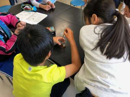 子供たちは色が変わるかなぁとワクワクしながら観察していました。