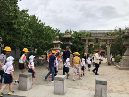 松山神社では、無事に避難してきたみんなをセイバーミライが迎えてくれました。