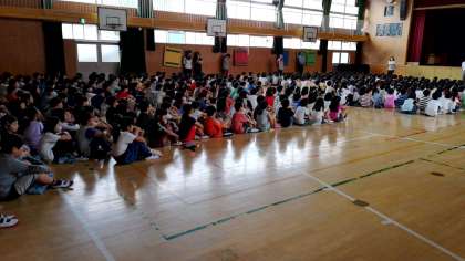 今日は五年生が遠足でいないので、少しさみしい講堂です。
