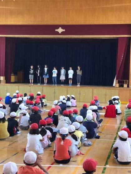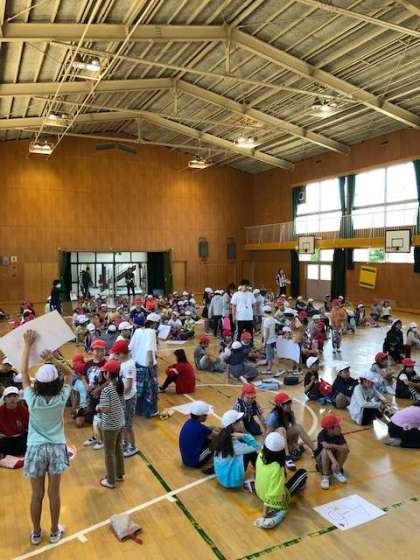 3・5年のなかよし班で「船長さんの命令」をしました。負けた人が自己紹介をしたり、船長さんの命令で好きな色をみんなに教えたりして楽しく活動しました。