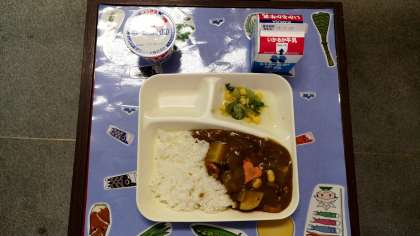今日の給食にはカレーライスとヨーグルトが出ました。好物の人も多いのではないでしょうか。