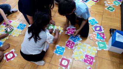 パネルを並べたり、試したり、あえて1枚だけおかしくして違うグループに考えてもらったり..。