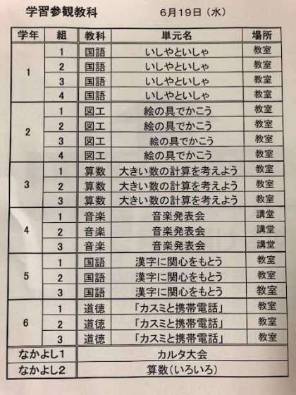 6月19日(水)5限目(13:55〜14:40)は参観日です。たくさんの来校をお待ちしております。