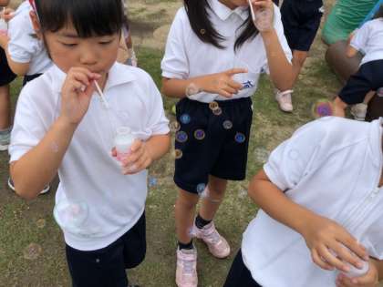 そんな中、1年生は生活科の時間でシャボン玉遊びをしました。