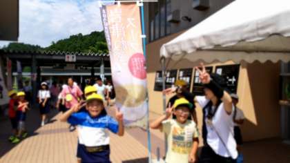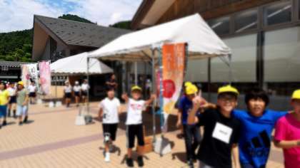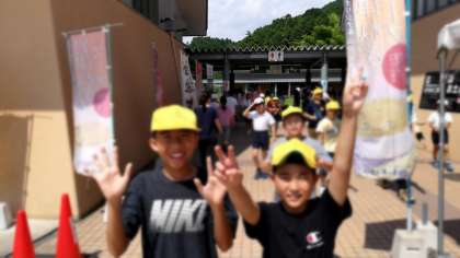 楽しそうです。黄色帽子で私服の人が小松小学校かな?