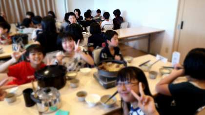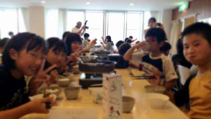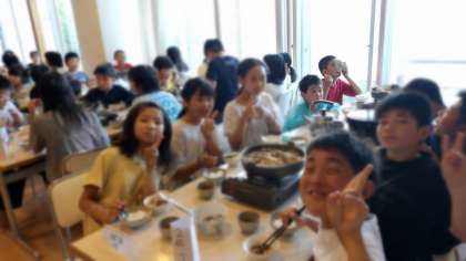 良い笑顔です。林間最後の夕食、おいしかったかな〜?
