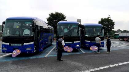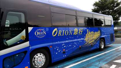 帰りは、行きのバスと違い、「オリオン急行」と描かれたバスで、小松小学校をめざしています。