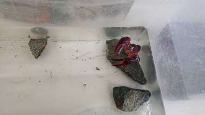 学級や学年で飼っているザリガニやお魚たちは、職員室前に移動し、先生たちがエサを入れています。