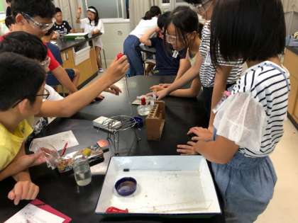 この日は、塩酸に溶けた鉄とアルミニウムの行方を調べました。