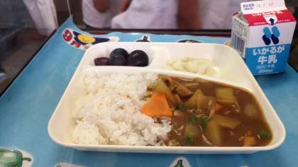 今日の給食のカレーには、ラッキーニンジンも入ってましたよ。