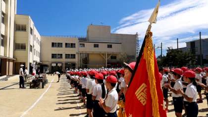 閉会式練習、今日の練習は赤組が優勝旗を授与されました。
