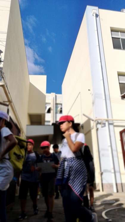運動場がぬかるんでいたので、東門からの出発です。