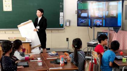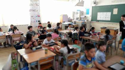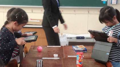 はこの形や筒の形など、一人一台タブレットを使い、写真撮影。