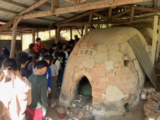 焼き窯を見学しています。
