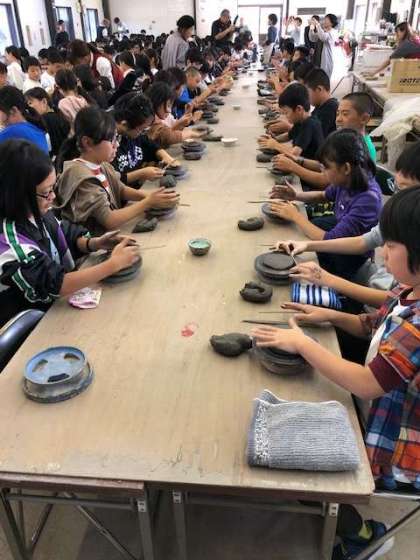 陶芸体験です。さぁーどんな物が出来上がるか楽しみです。