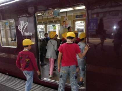 5-6人のグループごとに学校を出発、相川駅から上新庄駅まで電車に乗って、また学校へ戻ってきます。