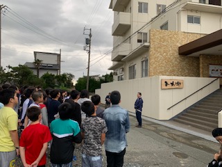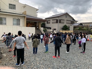 天気は曇りで風は結構強いですが、子どもたちは朝から元気に体操しています。
