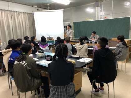 11月7日、株式会社 竹中土木の方々に来ていただき、地震や液状化についての出前授業をしてもらいました。