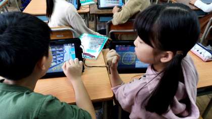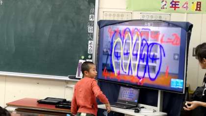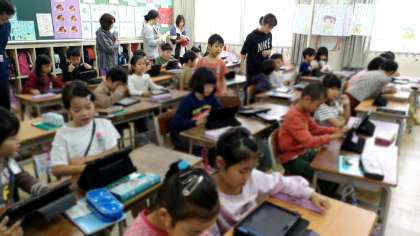 まず、自分たちで、身の回りにある「九九で計算できそうなもの」を探し、タブレットで撮影をしました。