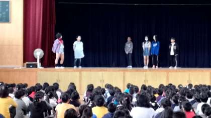 体を張った?劇や、クイズを交えながら、楽しく分かりやすく発表してくれました。