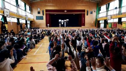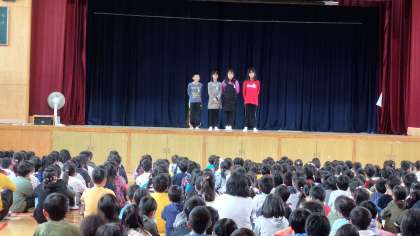 今日は集会で、運動委員会のみなさんが、遊び方や講堂の使い方を教えてくれました。