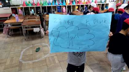 「先生、撮って!」とスリッパリレーの店番に言われてパチリ。