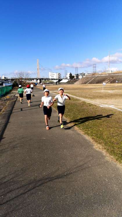 晴天のもと、四年生はかけ足大会を行いました。