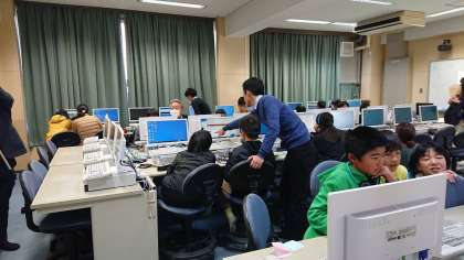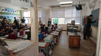 1年4組、3年1組、コンピュータクラブは公開授業を行い、大阪市内の各校から来た教職員が参観しました。