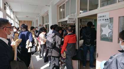 窓も外し、近くの教室へテレビ中継も実施。教室内、廊下、次から次へと人が増えていきました。