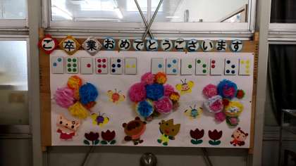 なかよし教室前には、点字も使ったお祝い掲示がありましたよ。