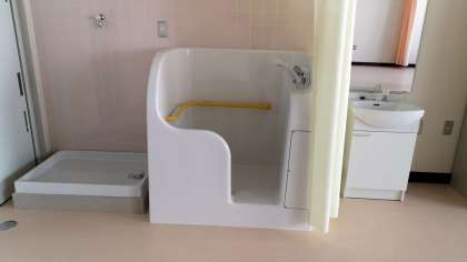 2枚目は保健室。あたたかな雰囲気の部屋です。シャワーが、よく考えられた形になっていますね。